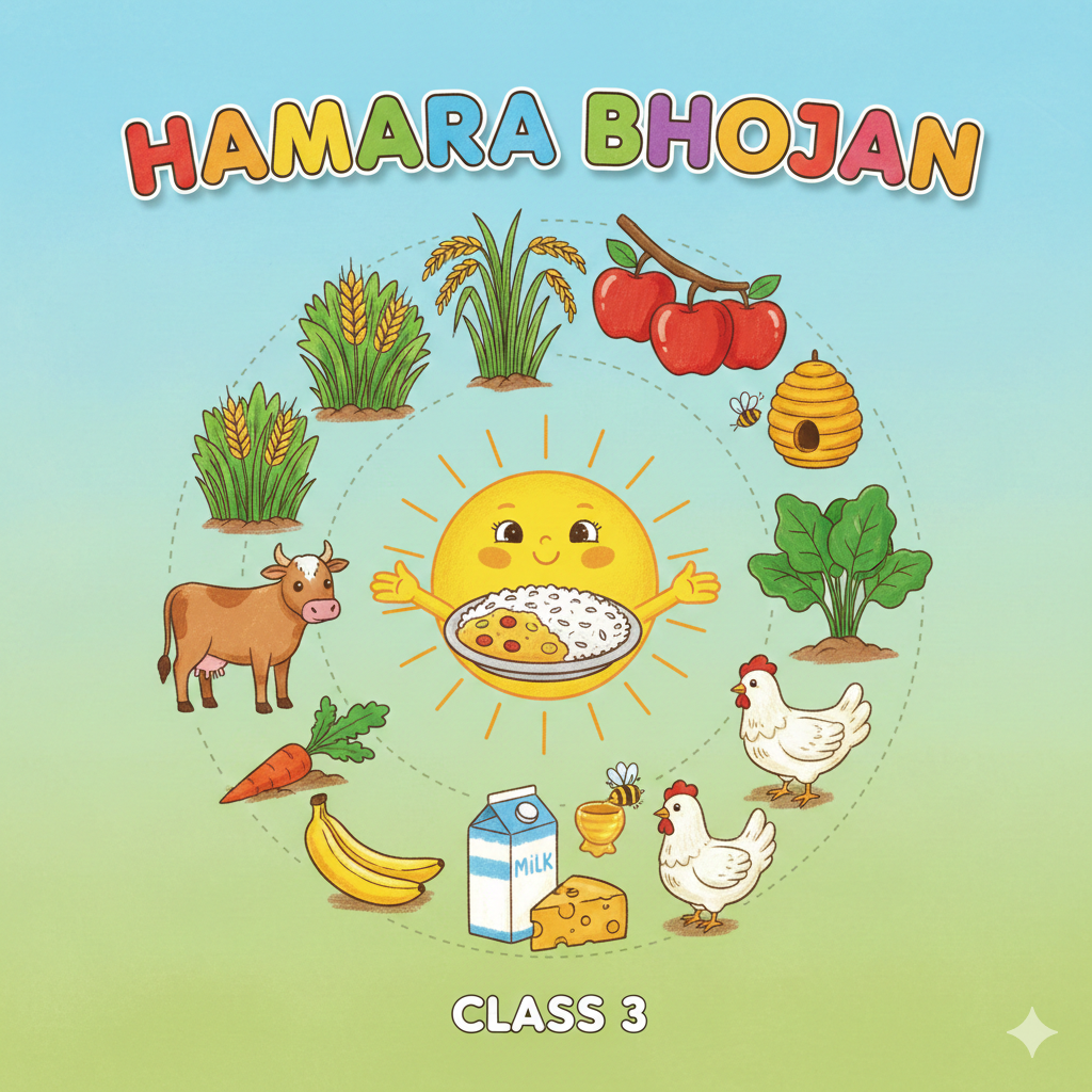 UP BASIC EDUCATION CLASS 3 हमारा परिवेश 🍎 पाठ: हमारा भोजन जीवित रहने और बढ़ने के लिए हमें भोजन की…