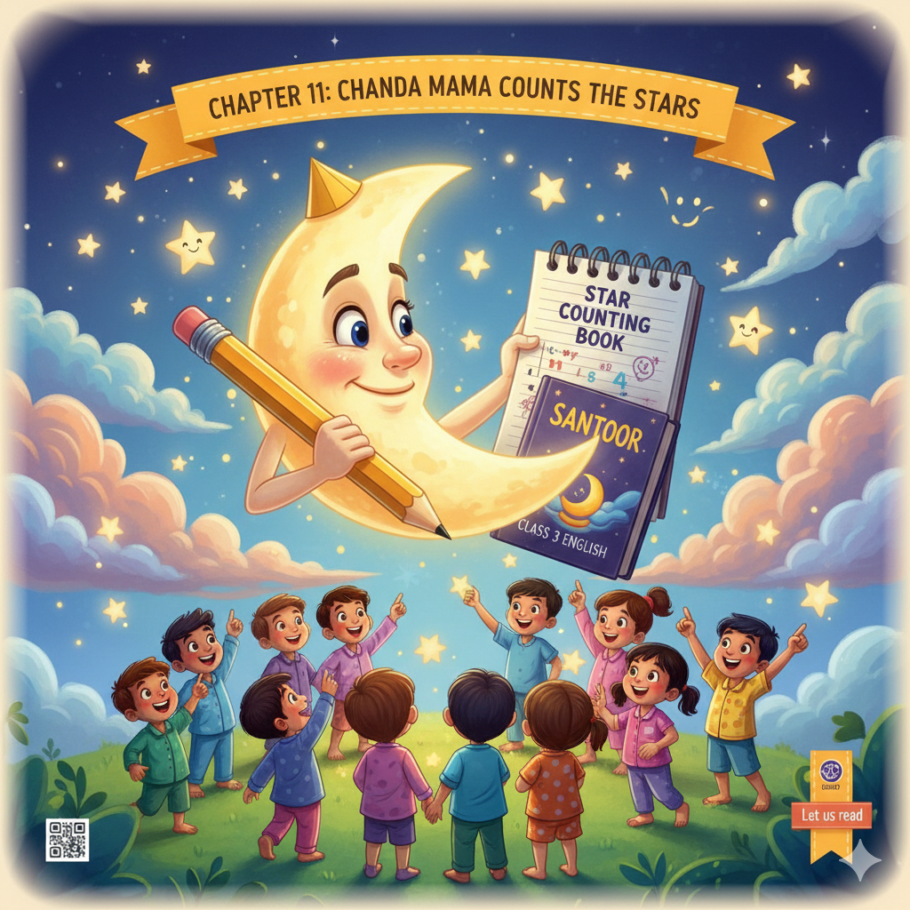 Summary:- इस वीडियो में कक्षा 3 की अंग्रेजी पुस्तक ‘संतूर’ (Santoor) के अध्याय 11 ‘Chanda Mama Counts the Stars’ को…