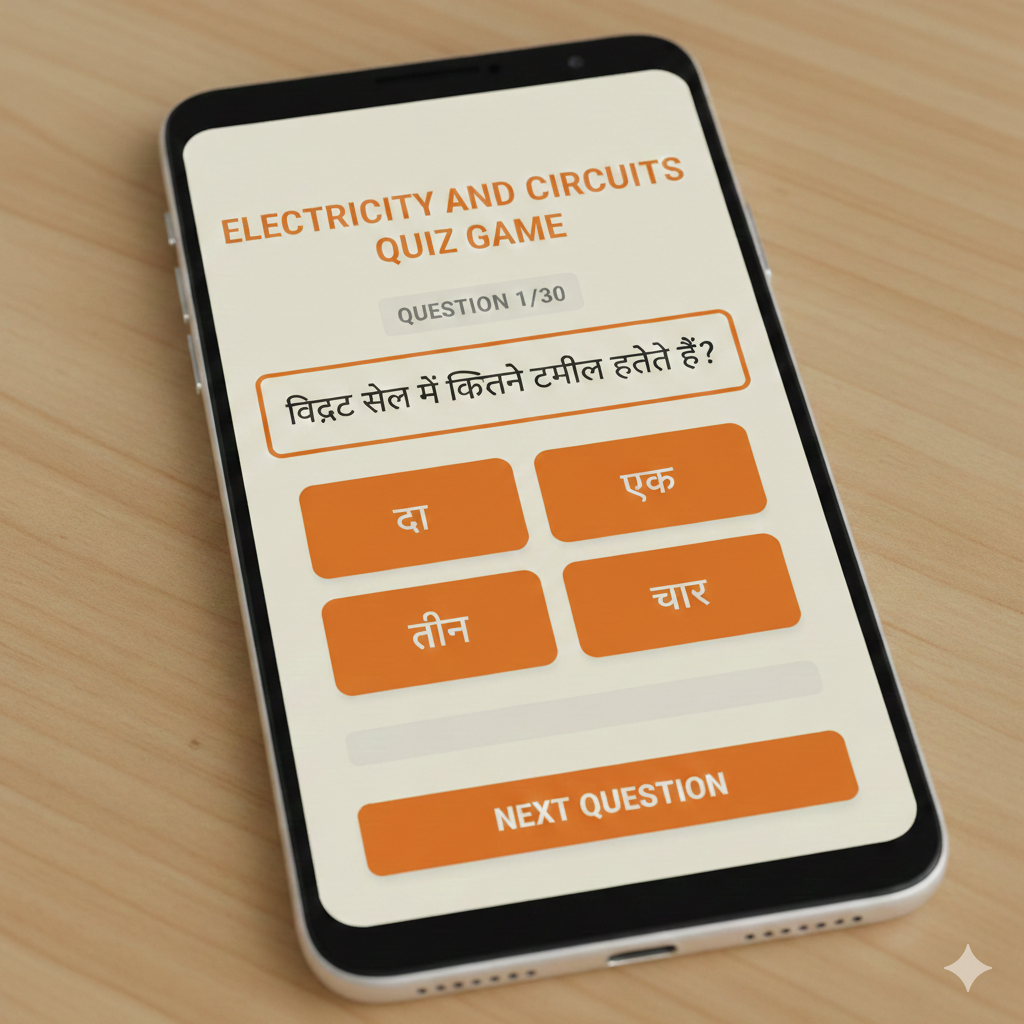 विद्युत क्विज विद्युत और परिपथ प्रश्न 1/30 लोड हो रहा है… अगला प्रश्न क्विज परिणाम फिर से खेलें electricity and…