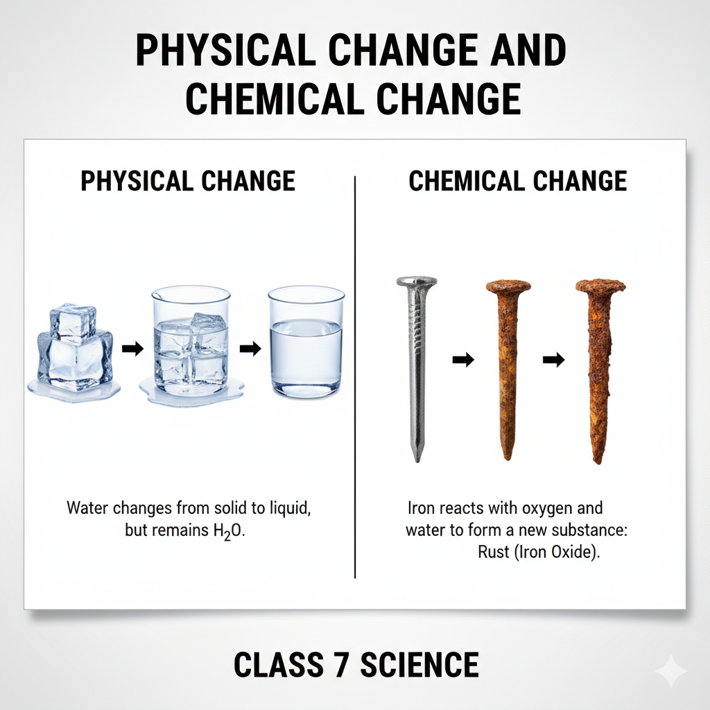 CLASS 7 SCIENCE :PHYSICAL CHANGE AND CHEMICAL CHANGE