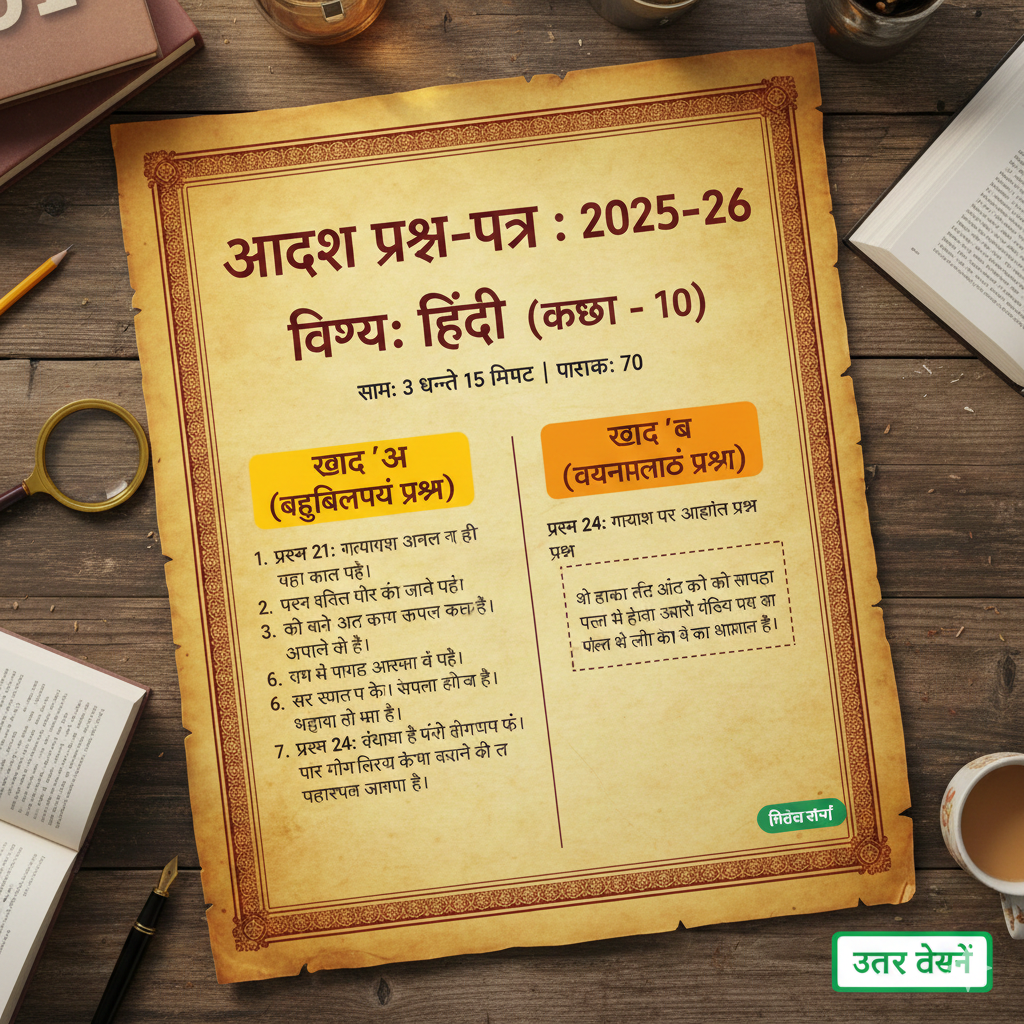UP Board 2026 – Hindi Model Paper आदर्श प्रश्न-पत्र : 2025-26 विषय: हिंदी (कक्षा – 10) समय: 3 घण्टे 15 मिनट पूर्णांक: 70 सामान्य निर्देश: 1. प्रारम्भ के 15 मिनट…