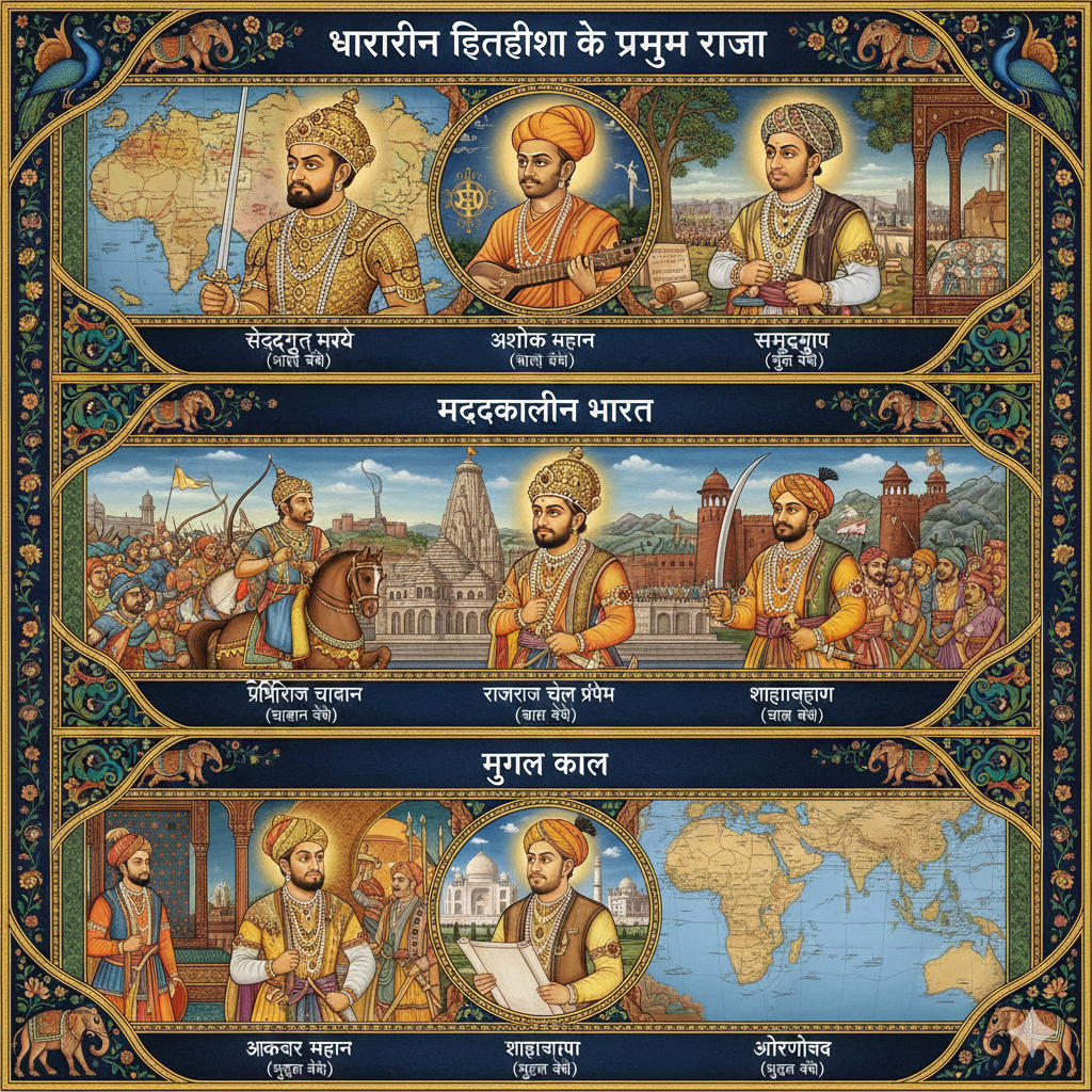 भारतीय इतिहास विशाल और गौरवशाली रहा है, जहाँ अनेक शक्तिशाली राजवंशों ने शासन किया। यहाँ भारत के कुछ सबसे प्रमुख राजाओं और उनके राजवंशों की संक्षिप्त एवं व्यवस्थित जानकारी दी…