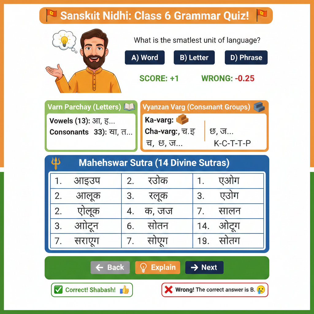 “कक्षा 6 के विद्यार्थियों के लिए संस्कृत व्याकरण (संस्कृत निधि) का संपूर्ण परिचय संस्कृत निधि: वर्ण परिचय सारांश चार्ट (Quick Revision): क्रम विषय (Topic) मुख्य बिंदु (Key Highlights) याद रखने…