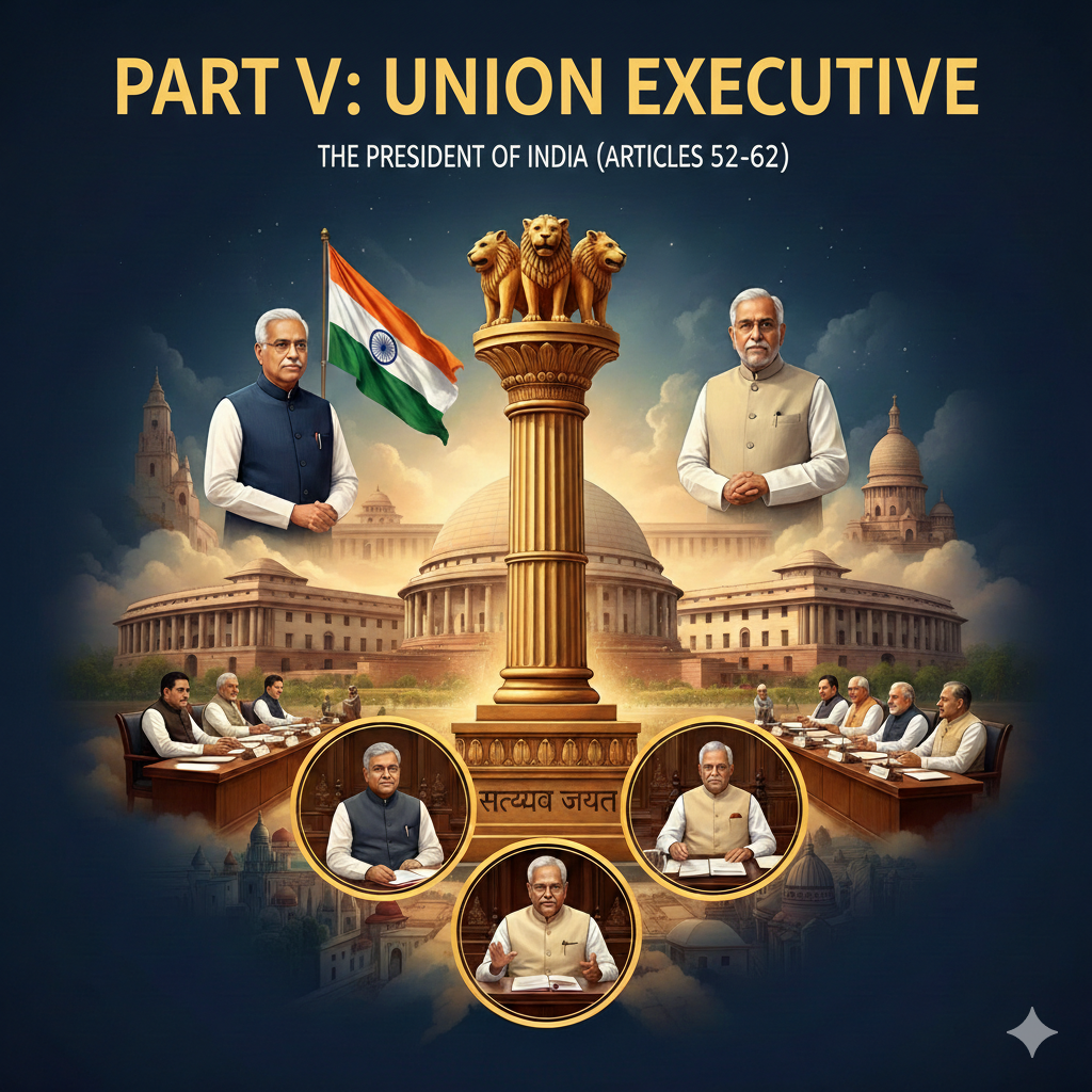 भारतीय राष्ट्रपति: महा-क्विज एवं व्याख्या 🇮🇳 भारतीय संविधान: भाग 5 (कार्यपालिका) 🇮🇳 भारत का राष्ट्रपति (अनुच्छेद 52-62) अनुच्छेद 52: भारत का राष्ट्रपति भारत के संविधान का अनुच्छेद 52 एक छोटा…