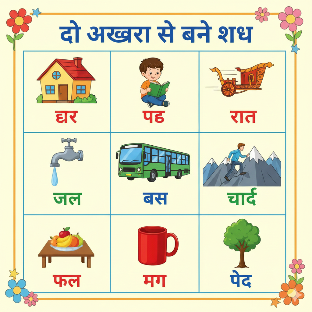 दो अक्षरों वाले शब्द – Quiz दो अक्षरों से बने शब्द शब्द को पहचानें और सुनना चाहें तो बटन दबाएं! घर 🔊 आवाज़ सुनें अगला शब्द ➡️ पाठ का अभ्यास…