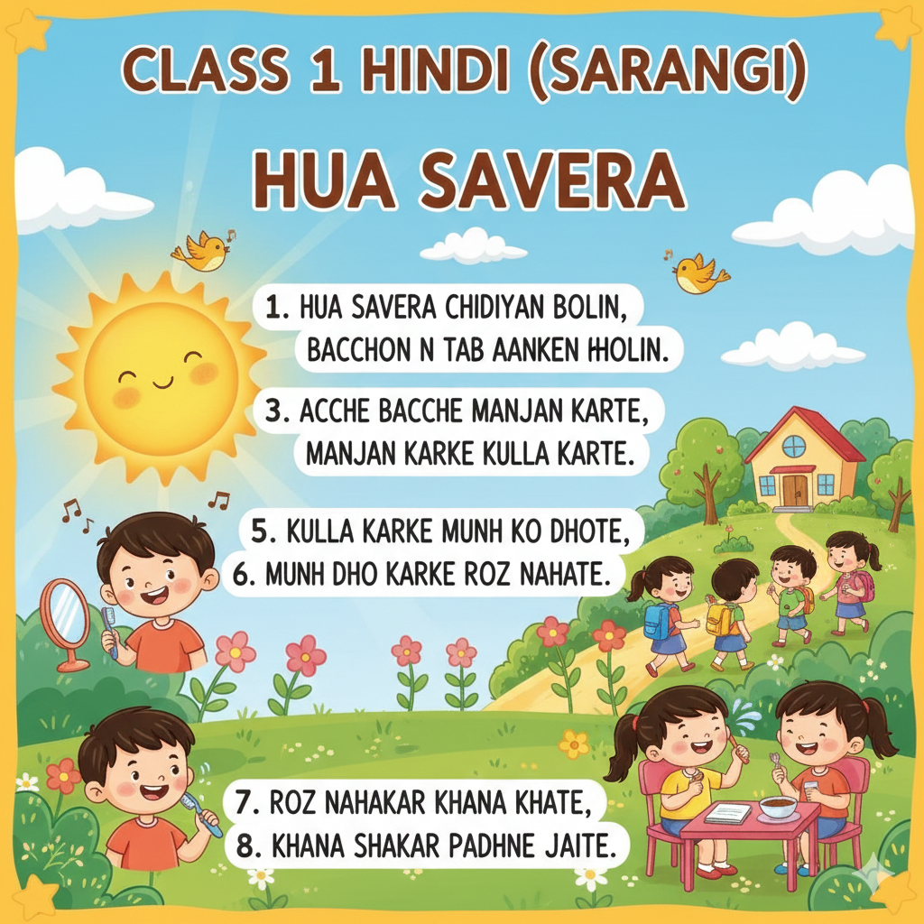 कक्षा 1 हिंदी (सारंगी) पाठ :हुआ सवेरा
