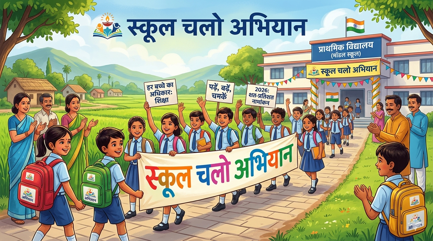 🎒 स्कूल चलो अभियान – 2026 “शिक्षित बच्चा, विकसित राष्ट्र” “आधी रोटी खाएंगे, स्कूल जरूर जाएंगे!” 📚✨ प्रिय अभिभावकों और जागरूक नागरिकों, उत्तर प्रदेश सरकार के नेतृत्व में ‘स्कूल चलो…