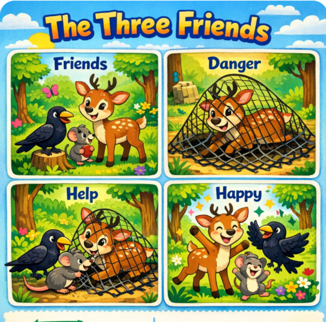 तीन साथी – इमोजी कहानी और खेल ⭐ सितारे: 0 👋 नमस्ते बच्चों! क्या आप ‘तीन साथी’ की कहानी सुनने के लिए तैयार हैं? कहानी शुरू करें ▶️ ‘इ’ (ि)…