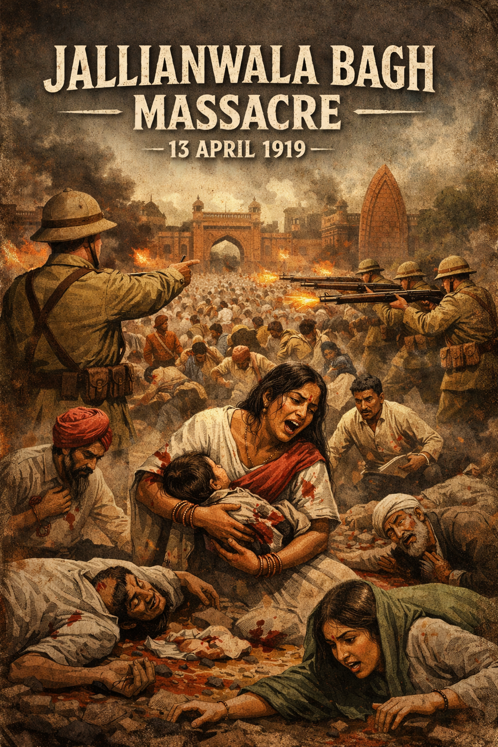 JALLIANWALA BAGH MASSACRE – 13 APRIL 1919 🇮🇳 JALLIANWALA BAGH MASSACRE (13 APRIL 1919) 🇮🇳 जलियांवाला बाग हत्याकांड: भारतीय स्वतंत्रता संग्राम का एक काला अध्याय 📜🏛️🌹 1. ऐतिहासिक पृष्ठभूमि और…