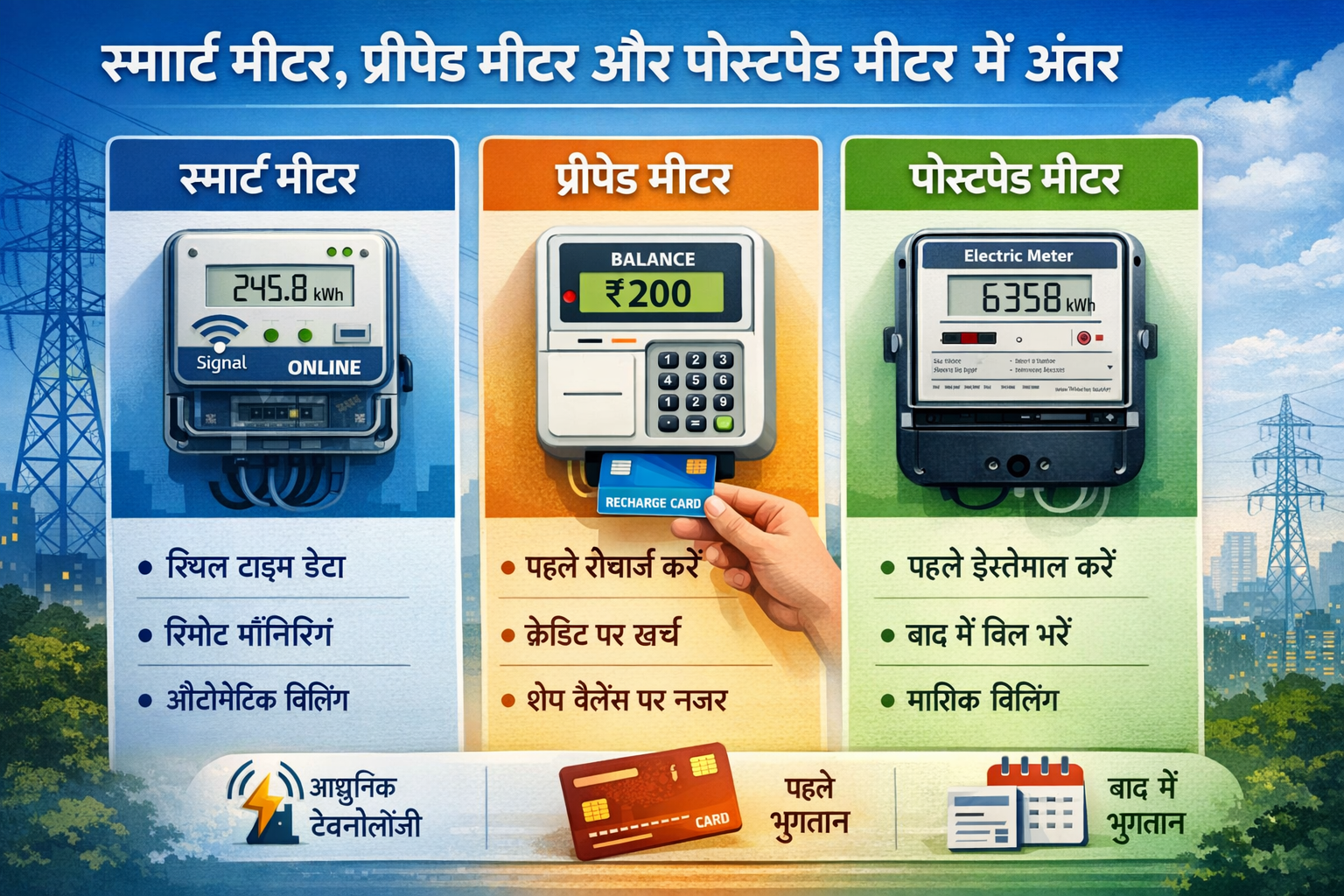 स्मार्ट मीटर तथा प्रीपेड मीटर और पोस्ट पेड मीटर में अन्तर