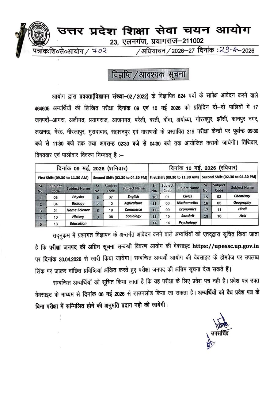 सूचित किया जाता है कि वर्ष 2026 की हाईस्कूल एवं इण्टरमीडिएट परीक्षा का परीक्षाफल दिनांक 23-04-2026 को सायं 04:00 बजे माध्यमिक शिक्षा परिषद्, मुख्यालय, प्रयागराज से घोषित किया जाएगा।परीक्षाफल को…