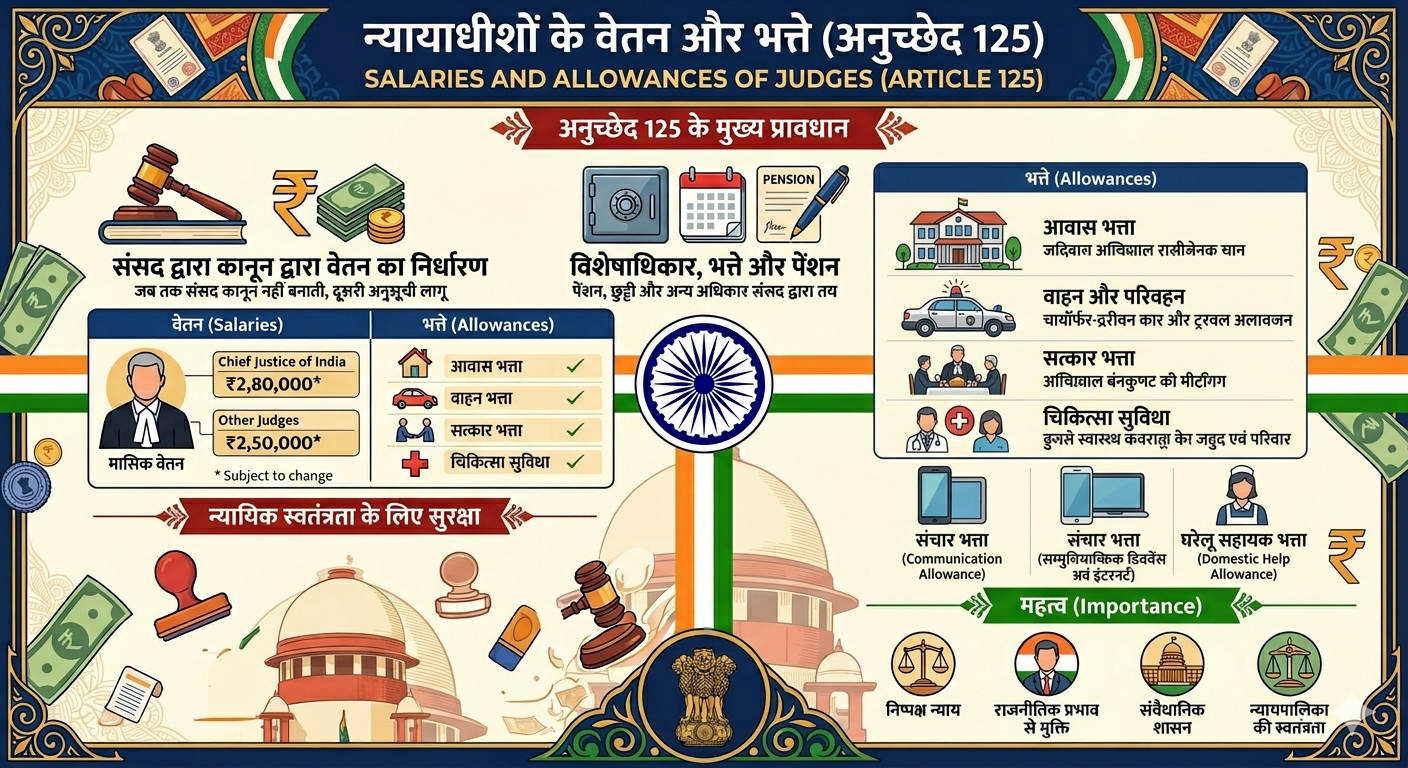 न्यायाधीशों के वेतन व भत्ते (अनुच्छेद-125)