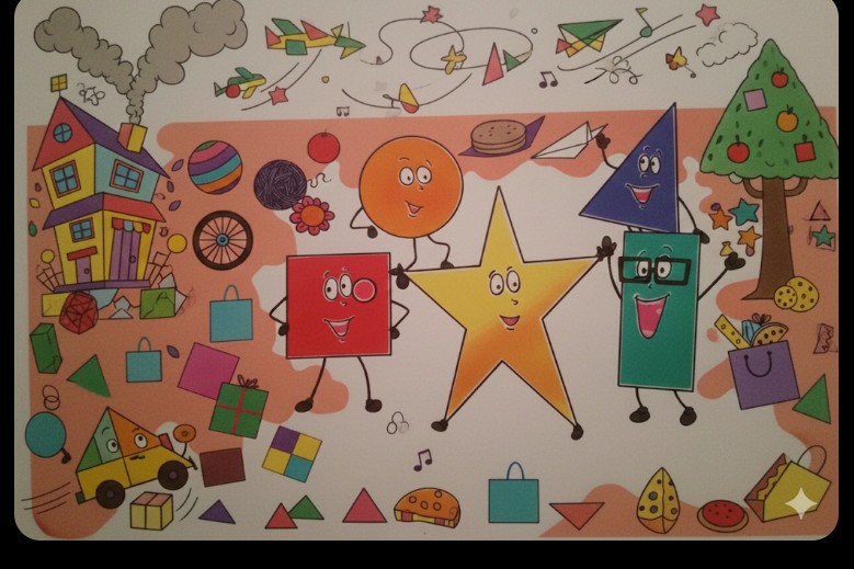 English: There were four friends — Circle, Square, Triangle and Rectangle.