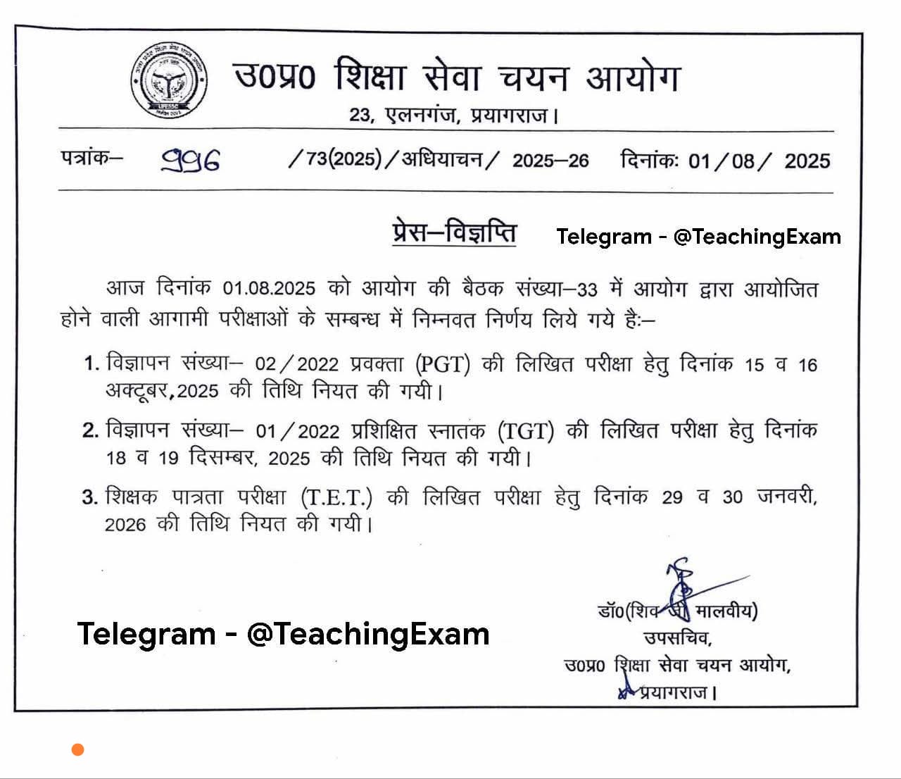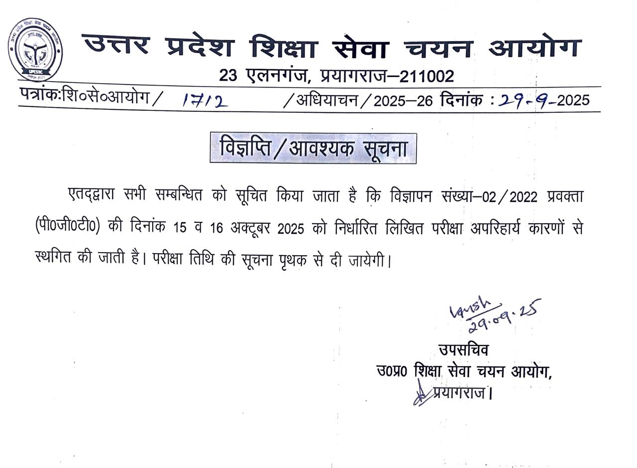 उत्तर प्रदेश शिक्षा सेवा चयन आयोग द्वारा जारी किए गए एक नोटिस में आज बताया गया है कि PGT यानी…