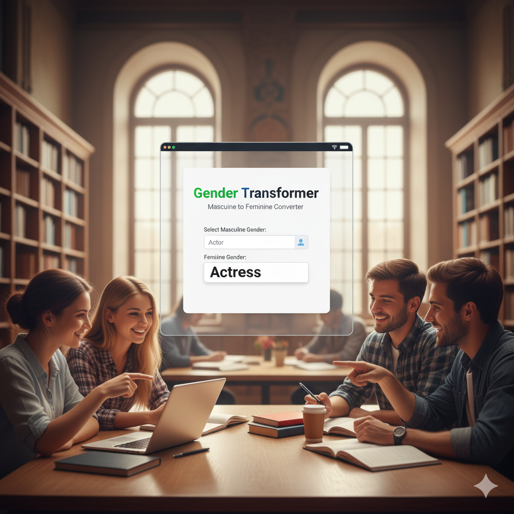 मैस्कुलिन से फ़ेमिनिन जेंडर ट्रांसफ़ॉर्मर 👨 मैस्कुलिन से फ़ेमिनिन 👩 मैस्कुलिन जेंडर चुनें: — जेंडर चुनें —Actor (अभिनेता)Author (लेखक)Bachelor (अविवाहित…