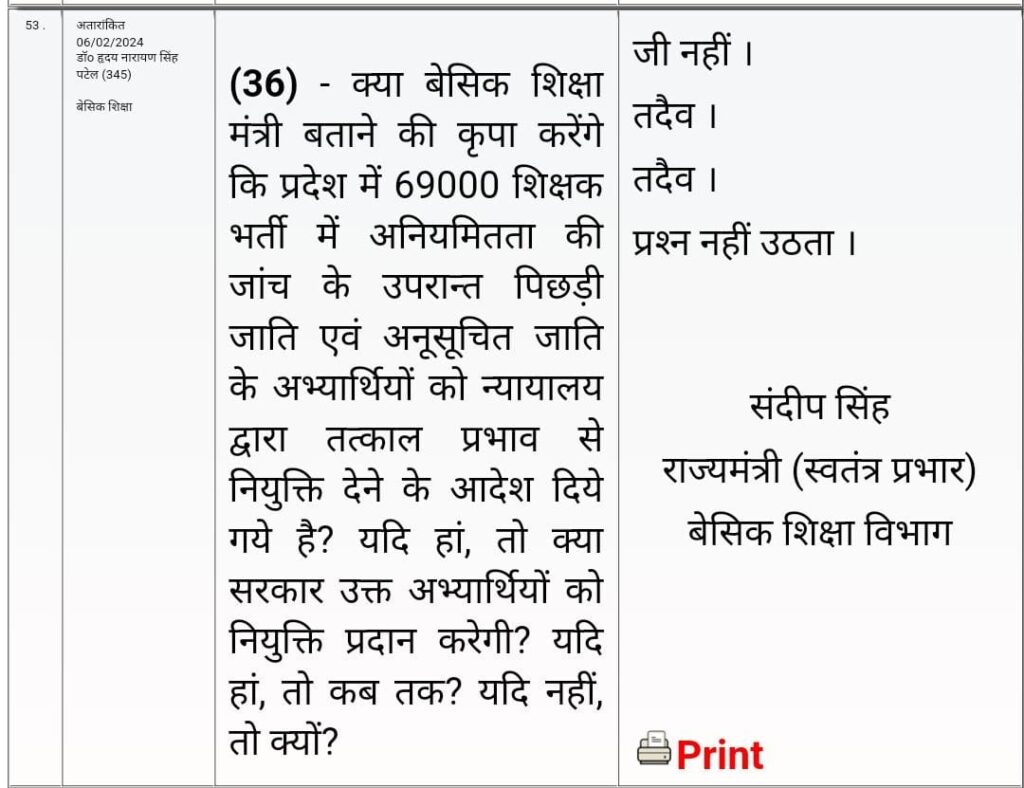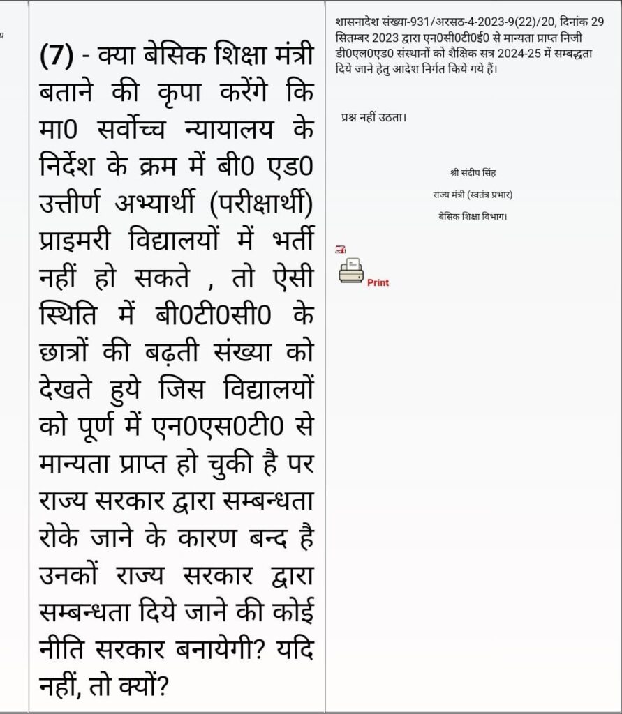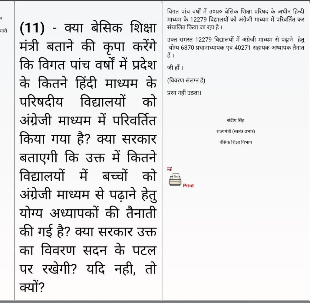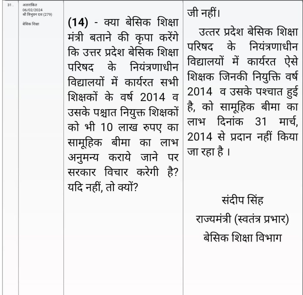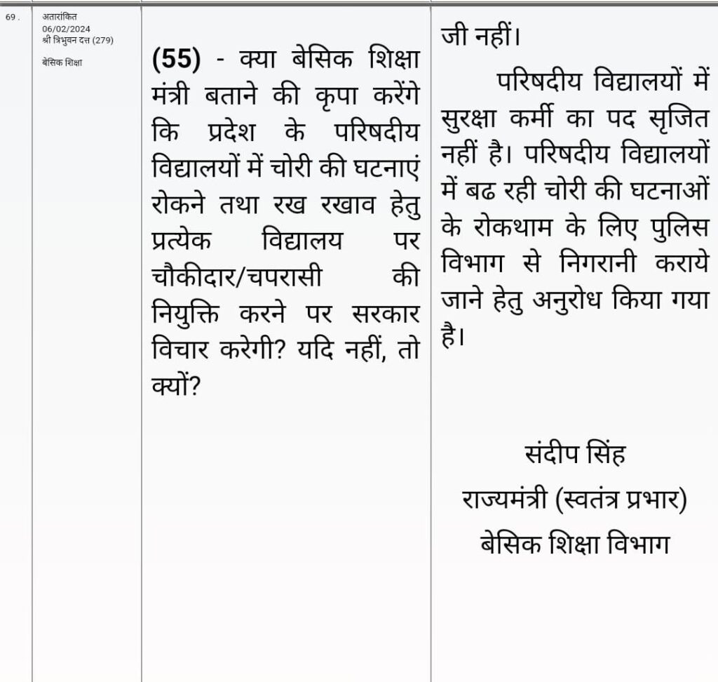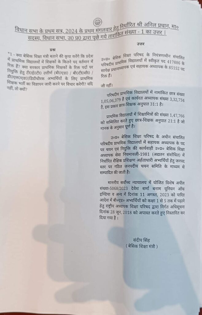 सोशल मीडिया पर शेयर किए जा रहे शिक्षा मंत्री उत्तर प्रदेश आदरणीय श्री संदीप सिंह जी द्वारा सदन में कही गयी बातें पत्र के रूप में देखें वीडियो व उन प्रश्नों के उत्तर जो उनसे पूछे गए हैं। उनके अनुसार उत्तर प्रदेश में छात्र व अध्यापक अनुपात एकदम सही है।