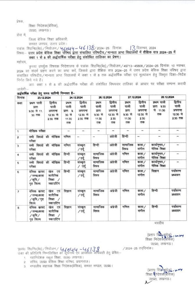 परिषदीय विद्यालयों में दिसम्बर माह में आयोजित की जाने वाली समय सारिणी में कुछ संशोधन हुआ है देखें नीचे पूरे आदेश को