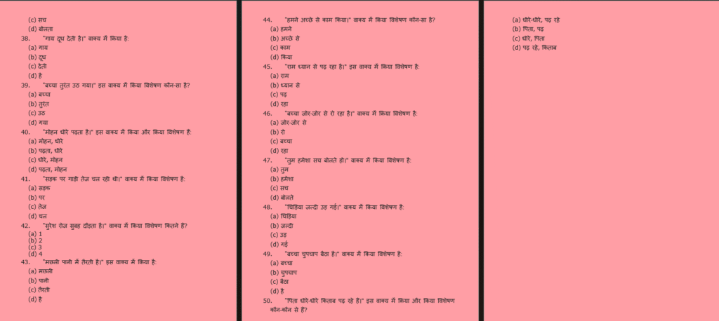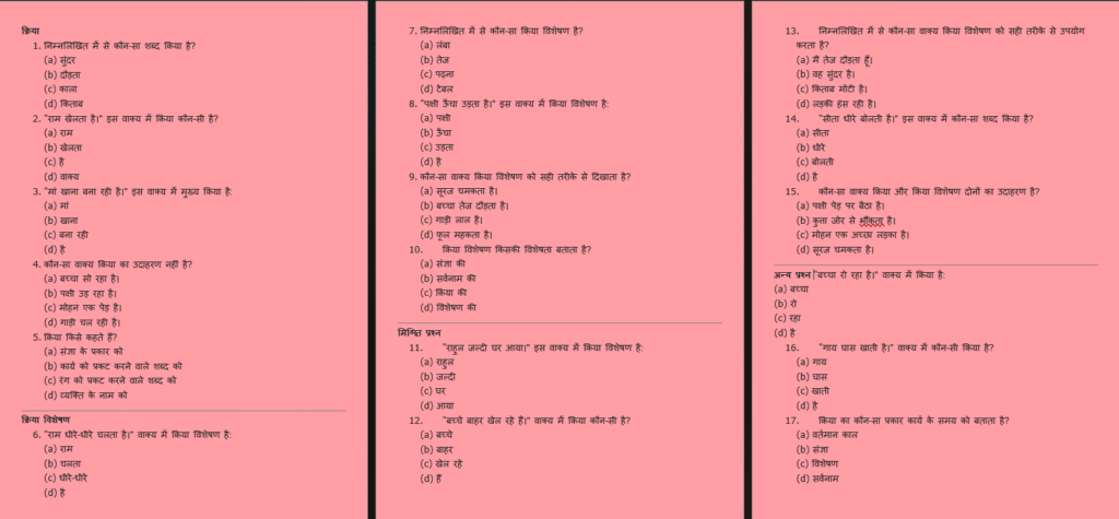 प्यारे बच्चों ये रहे क्रिया और क्रिया विशेषण से संबंधित 50 प्रश्न। सभी बच्चे इन प्रश्नों को कर ले कल इनके उत्तर यूट्यूब चैनल masterkey.fun24 पर दिए जाएंगे उनसे मिलान करके आप जन सकते हैं कि आपके कितने प्रश्न सही है और कितने गलत।