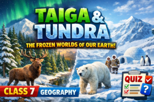 Spread the loveयूपी बोर्ड कक्षा 7 भूगोल (हमारा भूमण्डल) के पाठ 11 ‘टैगा एवं टुण्ड्रा प्रदेश’ की विस्तृत व्याख्या। इस पाठ में ध्रुवीय जलवायु, एस्किमो का जीवन, इग्लू, कयाक, रेंडियर और कोणधारी वनों के बारे में विस्तार से जानें। UP Board Class 7 Geography Chapter 11 Taiga and Tundra regions complete study material for students … Continue reading “हमारा भूमण्डल , कक्षा- 7, ‘प्राकृतिक प्रदेश एवं जनजीवन: टैगा एवं टुंड्रा, ‘सम्पूर्ण अभ्यास हल + परीक्षा तैयार के लिए 20 प्रश्नों की डिजिटल क्विज:👌