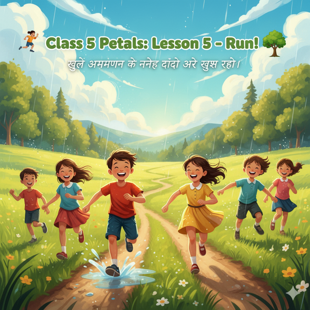 कक्षा 5 पेटल्स: Run! इंटरैक्टिव लर्निंग मॉड्यूल कॉलम 1: पोयम ‘Run!’ का भावार्थ (Summary in Hindi) कवि **मैरी डाउंट** बच्चों…