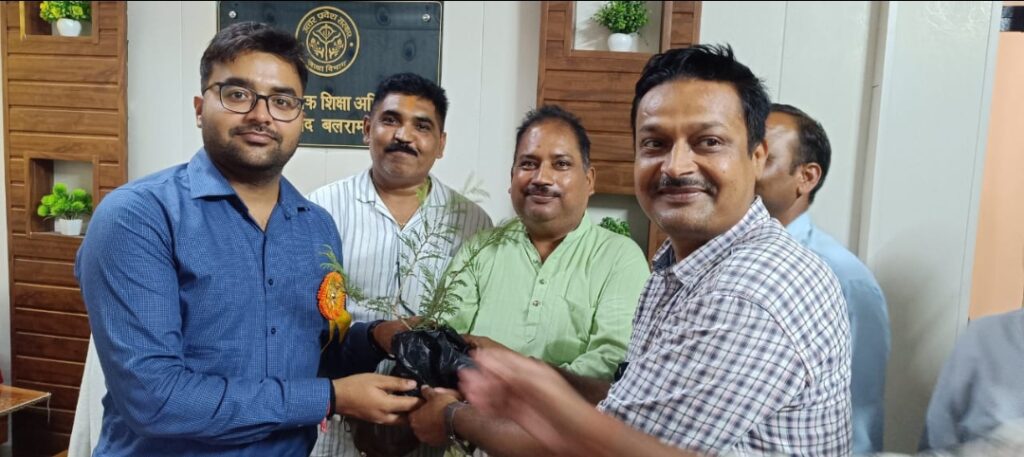 जनपद बलरामपुर में प्रथम आगमन पर बिशिष्ट बीटीसी शिक्षक वेलफेयर एसोसिएशन के पदाधिकारियों ने नवागत बीएसए श्री शुभम शुक्ला का जनपद बलरामपुर बीएसए बनाए जाने का स्वागत किया साथ ही बीएसए महोदय को पौधा और पुष्प गुच्छ भेंट किया गया।