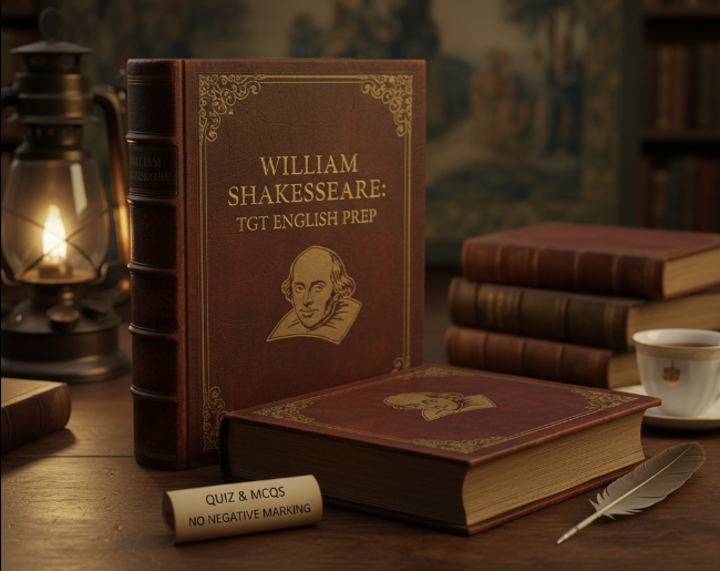 विलियम शेक्सपियर पर 100 प्रश्नों की यह प्रश्नोत्तरी यू.पी. टीजीटी अंग्रेजी पाठ्यक्रम के प्रमुख क्षेत्रों को कवर करने के लिए डिज़ाइन की गई है। इस प्रश्नोत्तरी में कोई नकारात्मक अंकन नहीं है।